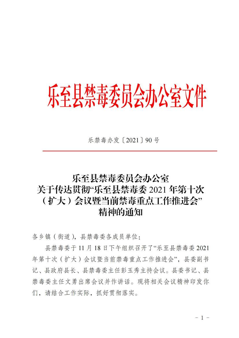 關(guān)于傳達(dá)貫徹“樂至縣禁毒委 2021 年第十次 (擴(kuò)大)會(huì)議暨當(dāng)前禁毒重點(diǎn)工作推進(jìn)會(huì)” 精神的通知